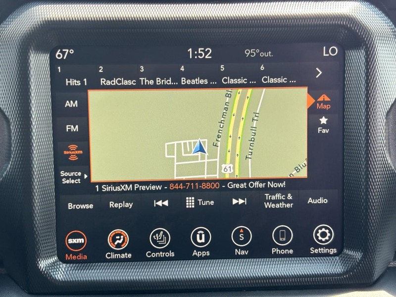 CALL (636) 462-3600 FOR MORE INFORMATION, ONE OWNER, CLEAN VEHICLE HISTORY NO ACCIDENTS, LOCAL TRADE, BLUETOOTH, REAR BACK UP CAMERA, APPLE CARPLAY / ANDROID AUTO, NAVIGATION / NAV / GPS, HEATED LEATHER SEATS, HEATED STEERING WHEEL, CRUISE CONTROL, REMOTE VEHICLE START, ALLOY WHEELS, TONNEAU COVER, SATELLITE RADIO, BED MAT. Cold Weather Group (Heated Front Seats and Heated Steering Wheel), Quick Order Package 24D Mojave, Trailer Tow Package (240 Amp Alternator, Class IV Receiver Hitch, Heavy-Duty Engine Cooling, and Trailer Hitch Zoom), 4-Wheel Disc Brakes, 4.10 Rear Axle Ratio, 9 Speakers, 97 MPH Vehicle Max Speed Calibration, ABS brakes, Air Conditioning, Alloy wheels, AM/FM radio: SiriusXM, Apple CarPlay/Android Auto, Auto-dimming Rear-View mirror, Automatic temperature control, Body Color 3-Piece Hard Top, Brake assist, Compass, Delay-off headlights, Driver door bin, Driver vanity mirror, Dual front impact airbags, Dual front side impact airbags, Electronic Stability Control, Emergency communication system, Freedom Panel Storage Bag, Front anti-roll bar, Front Bucket Seats, Front Center Armrest w/Storage, Front dual zone A/C, Front fog lights, Front License Plate Bracket, Front reading lights, Fully automatic headlights, Garage door transmitter, Heated door mirrors, Heavy Duty Suspension w/Gas Shocks, Illuminated entry, Integrated roll-over protection, Leather steering wheel, Low tire pressure warning, Navigation System, No Soft Top, Occupant sensing airbag, Outside temperature display, Panic alarm, ParkView Rear Back-Up Camera, Passenger door bin, Passenger vanity mirror, Power door mirrors, Power steering, Power windows, Premium Cloth Seats w/Sport Bolsters, Radio data system, Radio: Uconnect 4C Nav w/8.4" Display, Rear anti-roll bar, Rear reading lights, Rear Sliding Window, Rear Window Defroster, Remote keyless entry, Security system, Speed control, Split folding rear seat, Steering wheel mounted audio controls, Tachometer, Telescoping steering wheel, Tilt steering wheel, Traction control, Trip computer, Variably intermittent wipers, Voltmeter, Wheels: 17" x 7.5" Low Gloss Black Aluminum, and Wheels: 17" x 7.5" Low Gloss Black Machined. Priced below KBB Fair Purchase Price!