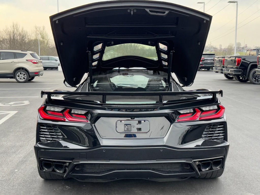 CALL (636) 462-3600 FOR MORE INFORMATION, ONE OWNER, CLEAN VEHICLE HISTORY NO ACCIDENTS, LOCAL TRADE, BLUETOOTH, REAR BACK UP CAMERA, REAR PARKING SENSORS, NAVIGATION / NAV / GPS, ALLOY WHEELS, FORWARD COLLISION ALERT, LANE DEPARTURE WARNING, LANE KEEP ASSIST, SATELLITE RADIO, WIRELESS APPLE CARPLAY / ANDROID AUTO, CARBON FLASH EXTERIOR ACCENTS, Z51 PERFORMANCE PACKAGE, BLACK PAINTED BRAKE CALIPERS, AUTO HIGH BEAMS, PERFORMANCE EXHAUST, BOSE PREMIUM AUDIO SYSTEM, REAR CAMERA MIRROR, Corvette Stingray 1LT, 2D Coupe, 6.2L V8, 8-Speed Dual Clutch, RWD, Black, Black Leather, Electronic Limited-Slip Differential, Heavy-Duty Cooling System, Performance Exhaust w/Stainless-Steel Tips, Performance Rear Axle Ratio, Rear Z51 Spoiler, Z51 Performance Brakes, Z51 Performance Package, Z51 Performance Suspension. Z51 Performance Package (Electronic Limited-Slip Differential, Heavy-Duty Cooling System, Performance Exhaust w/Stainless-Steel Tips, Performance Rear Axle Ratio, Rear Z51 Spoiler, Z51 Performance Brakes, and Z51 Performance Suspension), Battery Protection Package, Preferred Equipment Group 1LT, Corvette Stingray 1LT, 2D Coupe, 6.2L V8, 8-Speed Dual Clutch, RWD, Black, Black Leather, 10 Speakers, 4-Wheel Disc Brakes, 8-Way Power Driver Seat Adjuster, 8-Way Power Passenger Seat Adjuster, ABS brakes, Air Conditioning, Alloy wheels, AM/FM radio: SiriusXM, Auto High-beam Headlights, Auto-dimming Rear-View mirror, Automatic temperature control, Black Exhaust Tips, Body-Color Removable Roof Panel, Brake assist, Bumpers: body-color, Compass, Delay-off headlights, Driver door bin, Driver vanity mirror, Dual front impact airbags, Dual front side impact airbags, Electronic Stability Control, Emergency communication system: OnStar and Chevrolet connected services capable, Four wheel independent suspension, Front anti-roll bar, Front Bucket Seats, Front Center Armrest, Front dual zone A/C, Front License Plate Bracket, Front Radiator Grille Screens (LPO), Front reading lights, Fully automatic headlights, GT1 Bucket Seats, Heated door mirrors, Illuminated entry, Leather Shift Knob, Leather steering wheel, Low tire pressure warning, Mulan Lthr Seating Surfaces w/Perforated Inserts, Navigation System, Occupant sensing airbag, Outside temperature display, Overhead console, Panic alarm, Passenger door bin, Passenger vanity mirror, Power door mirrors, Power driver seat, Power passenger seat, Power steering, Power windows, Premium audio system: Chevrolet Infotainment 3 Plus, Radio data system, Radio: Chevrolet Infotainment 3 Premium System, Rear anti-roll bar, Rear window defroster, Remote keyless entry, Speed control, Speed-sensing steering, Sport steering wheel, Steering wheel mounted audio controls, Tachometer, Telescoping steering wheel, Tilt steering wheel, Traction control, Trip computer, Turn signal indicator mirrors, Variably intermittent wipers, Voltmeter, Wheels: 19" x 8.5" Fr/20" x 11" Rr 5-Split-Spoke, and Wheels: 19" x 8.5" Fr/20" x 11" Rr Bright Silver. Odometer is 3204 miles below market average!